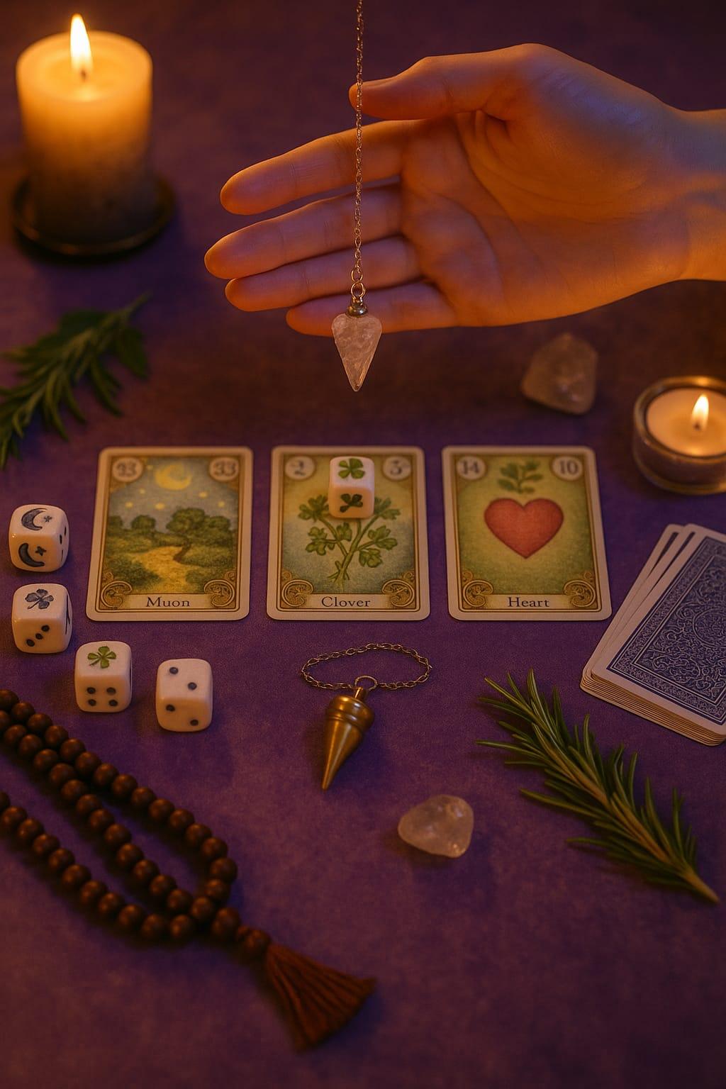 Permita que o movimento do pêndulo e o giro dos dados revelem os caminhos que o destino deseja mostrar.